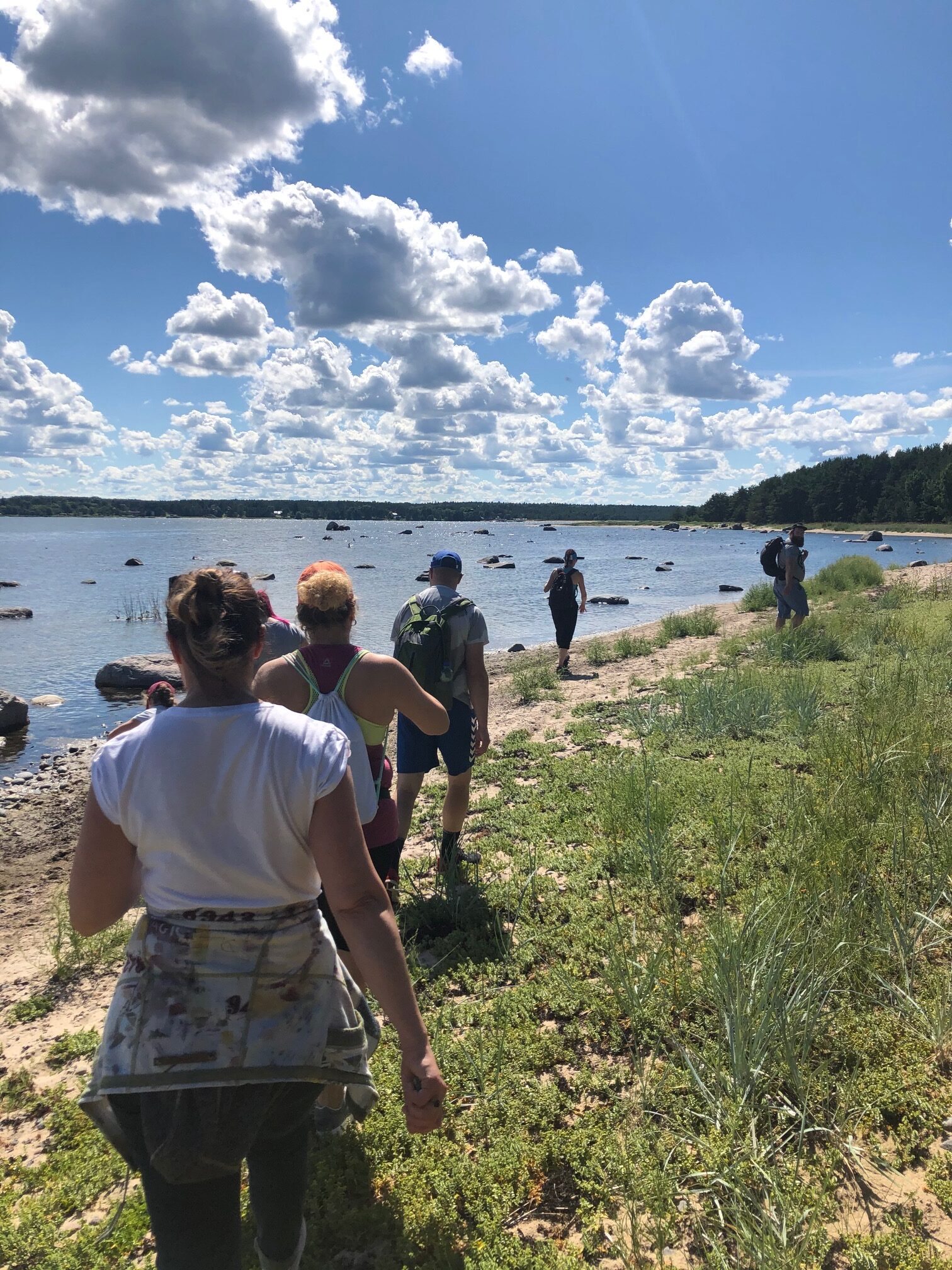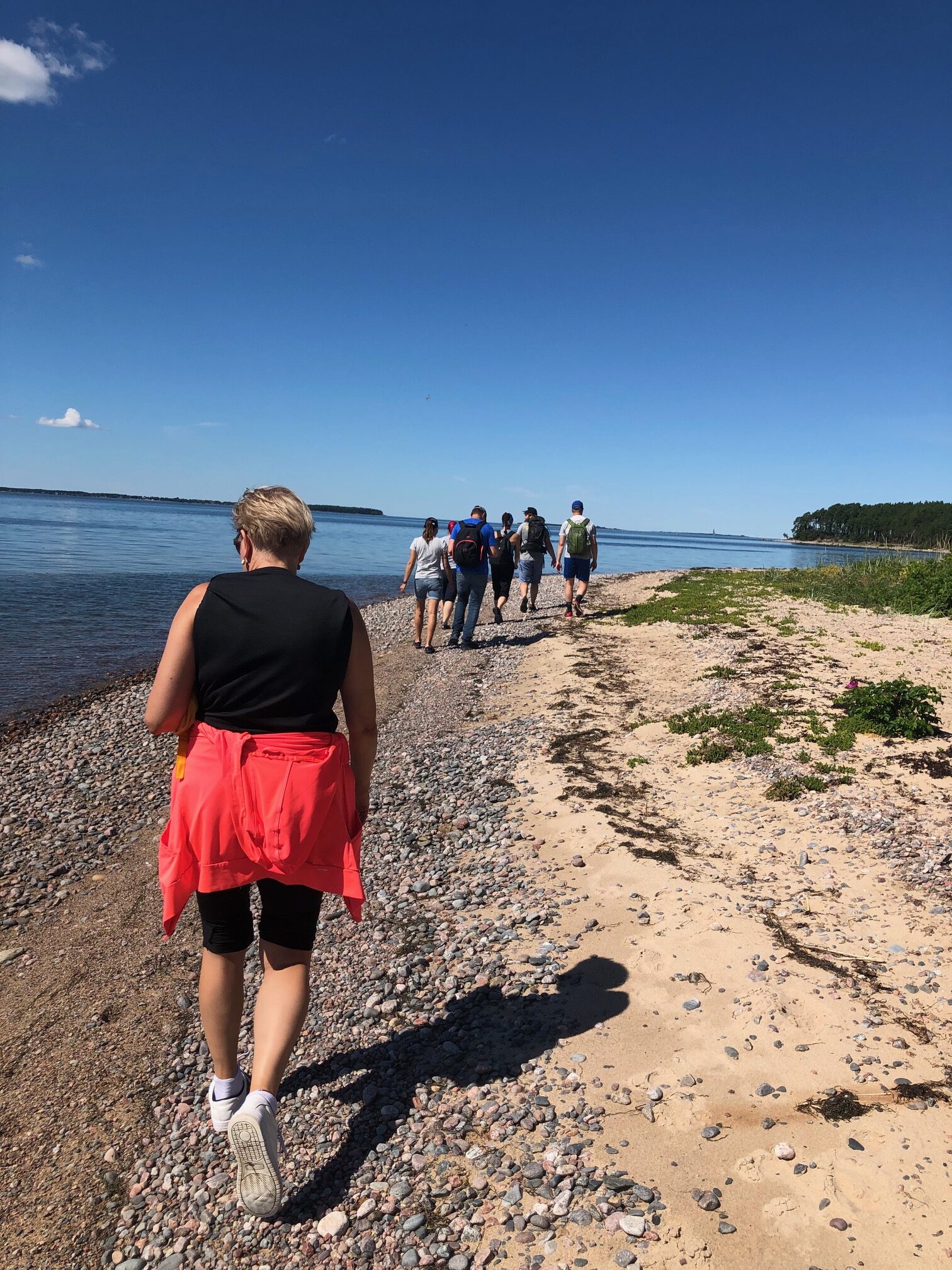 Kus me sel korral käisime? Kui juunikuus tegime tutvust Nõva laulvate liivadega, siis sel korral avastasime Harjumaal Salmistu 565 aasta vanust rannaküla ja saime nautida meretuult ja päikest ka mootorpaadiga, sest matk oli jagatud kaheks. Pisut üle 4 kilomeetri astusime Salmistu rannakülas, sammude kõrval kostitati meid loomulikult põnevate teadmistega ja seejärel juhiti meid juba mööda looklevat külateed Valkla ranna suunas ja saime liival patseerides astuda tagasi matka alguspunkti Salmistu sadamasse. Sadamas ootasid meid juba mootorpaadid, mis viisid osalejad kaunile inimasustuseta Pedassaarde. Saarel matkasime rohkem kui 6 kilomeetri jagu ringi peale ja peab ütlema – looduses on väge. Saar on imeilus, pakub rohkelt silmailu ja eriilmelisust. Kui saare ühes otsas on pinnamood pigem tasane, siis saab kohata ka mitmemeetriseid liivaastanguid ja justkui munakivi sillutisega rannaalasid. Silma paitasid imekaunid männid ja merele kiigates tervitasid hiiglaslikud rändrahnud.